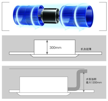 機身纖薄,可減少房間的吊頂空間,安裝不受層高限制,更可靈活搭配房間裝